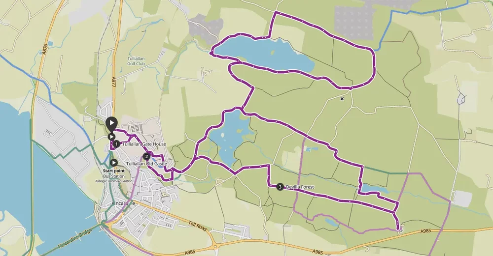Diese Tour eignet sich perfekt für Anfänger und bietet zahlreiche Sehenswürdigkeiten wie die historischen Ruinen des Tulliallan Old Castle sowie die glitzernden Gewässer des Moor Lochs und den beeindruckenden Peppermill Dam. Mit einer durchschnittlichen Fahrzeit von nur etwa 1 Stunde und 15 Minuten lässt sich diese Fahrradtour leicht in deinen Tagesplan integrieren, während Du dennoch genug Zeit hast, die Schönheit der Umgebung zu genießen. Schnapp dir dein Fahrrad und tauche ein in die unberührte Natur des Devilla Forest auf dieser unvergesslichen Tour!