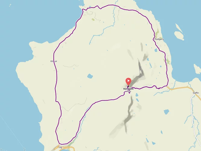 Deine Reise beginnt und endet am Quiraing, einem der markantesten und schönsten Orte auf der Insel. Von hier aus führt dich die Route durch den majestätischen Quiraing Pass, der mit seinen steilen Anstiegen und atemberaubenden Ausblicken selbst erfahrene Radfahrer herausfordert.