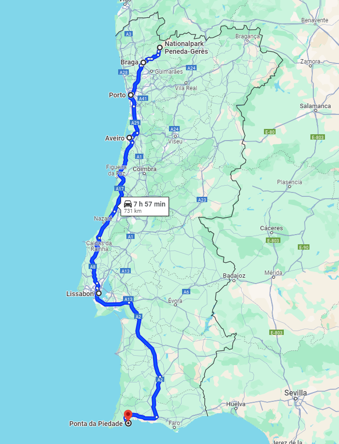 Peneda-Gerês - Braga - Porto - Aveiro - Lissabon -Ponta da Piedade