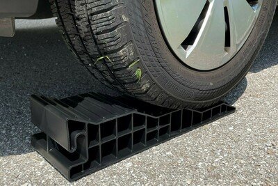 Mithilfe der Auffahrkeile kann das Fahrzeug auch in unebenen bzw. abschüssigen Positionen waagrecht…