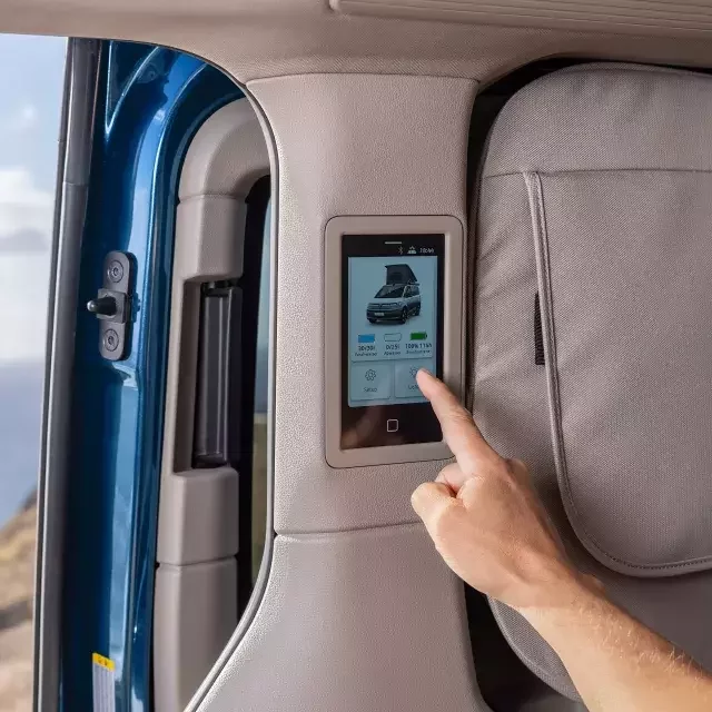 Der neue VW California bringt das Camperleben ins digitale Zeitalter. Alle wichtigen Funktionen, wie die Steuerung der Innenbeleuchtung, das Heizen oder die Klimaanlage, kannst du jetzt bequem über die California-App oder das Infotainment-System steuern. Mit der Camper-Bedieneinheit an der C-Säule hast du alle Funktionen im Blick, ganz einfach über ein Touchdisplay. Diese Technologien sorgen dafür, dass du dich voll und ganz auf dein Abenteuer konzentrieren kannst, während der Camper dir das Leben so angenehm wie möglich macht.